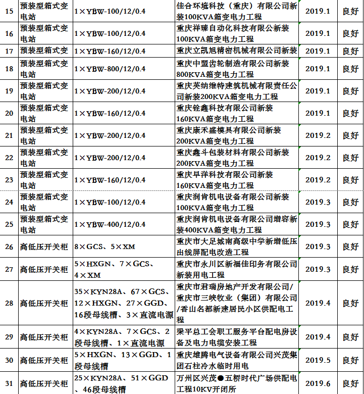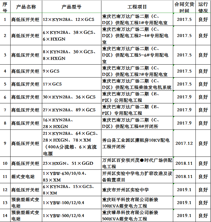 四川省慶輝電力設備有限公司部分業績